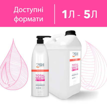 Шампунь PSH White Vibes 300 мл для білої та світлої шерсті собак: каолін м’яко очищає й детоксикує, допомагає освіжити відтінок, алое та протеїни пшениці зволожують і зміцнюють шерсть. Без парабенів, силіконів і катону; підходить чутливим улюбленцям і для частого застосування.